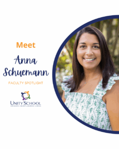What brought me to Unity School was a former coworker who was moving and encouraged me to interview for her 4th-grade position. I was hesitant, but the moment I met Mr. St. Laurent, and he spent hours touring me around campus, I felt something special. From the peace walk, to the art room, to Lessons and Living, to every faculty member who smiled and introduced themselves – I knew this was a place filled with warmth, purpose, and community.